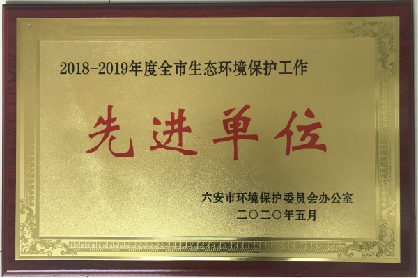 金寨海創榮獲“六安市生態環境保護工作先進單位”榮譽稱號