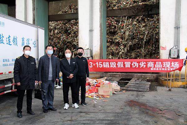 霍邱海創協助霍邱縣市場監督管理局銷毀假冒偽劣商品