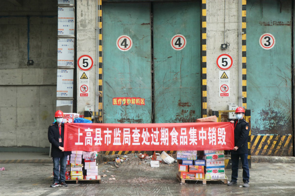 上高海創(chuàng)協(xié)助上高縣市場(chǎng)監(jiān)督管理局集中銷毀過期食品