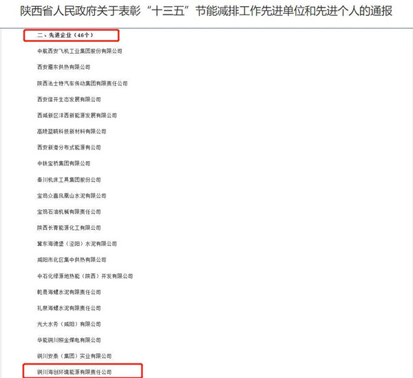 銅川能源榮獲陜西省“十三五”節(jié)能減排工作先進企業(yè)稱號