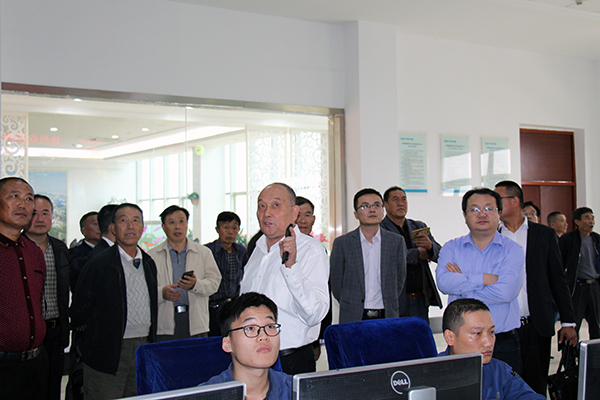 ? ? 2019年10月14日上午,銅陵市樅陽縣群眾代表團40余人在樅陽縣常務副縣長楊賢招的陪同下到霍邱海創參觀。公司總經理王錫成率班子成員熱情接待了參觀團一行。