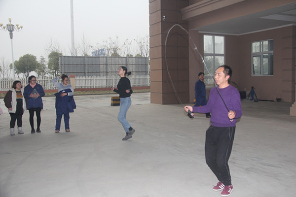 ? ? 跳繩作為一項(xiàng)有氧健身運(yùn)動(dòng)被越來(lái)越多的年輕人所推崇,賽場(chǎng)上,來(lái)自各個(gè)部門(mén)的男、女職工代表正在張羅著一場(chǎng)別開(kāi)生面的跳繩比賽。比賽限時(shí)3分鐘,以得數(shù)最多者為勝。比賽開(kāi)始了,現(xiàn)場(chǎng)氣氛熱烈非常。參賽選手各個(gè)卯足了勁兒,有的憋得面紅耳赤,有的跳得輕松自如。吶喊聲、喝彩聲響成一片。