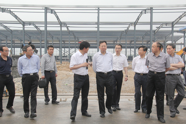 ? ? 在公司領導的帶領下,陳副省長一行首先來到項目現場宣傳展板前,李總向陳副省長詳細介紹了亳州海創新材料公司的基本情況、投資規模、產品特點、市場前景以及當前工程建設進度等有關情況。他介紹說:亳州海創新材料公司是中國海螺創業控股有限公司下屬全資子公司,于2013年8月27日注冊成立,是一家主要致力于新型節能綠色建筑材料研發、制造、銷售、應用及建筑、安裝等業務的企業。一期纖維水泥板(CCA)項目引進歐洲先進成套設備及工藝技術,項目工程于2013年10月23日正式開工建設,預計今年9月建成投產,陳副省長聽后非常高興。
