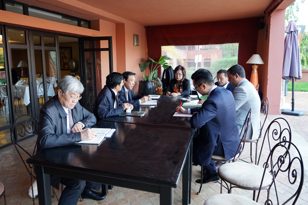 ??? 當天下午,紀勤應總經理在馬拉喀什索菲特酒店會見了摩洛哥外貿銀行國際業務執行總經理Agoumi先生。Agoumi先生是摩洛哥外貿銀行國際業務部的主要負責人,與中國鐵建、海特集團等國企、民企有著長期的合作關系。