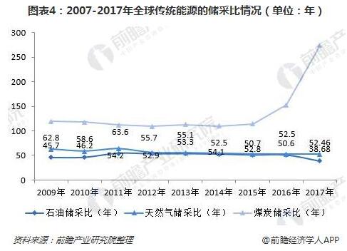 ? ?2007-2017年,全球的石油和天然氣儲采比在下降,2017年分別為38.68年和52.46年;煤炭的儲采比再上升為274年。雖然煤炭的儲采比在增加,但是使用煤炭對地球環(huán)境來說并不是一個很好選擇,煤炭燃燒時絕大部分的硫被氧化成二氧化硫(SO2),隨煙氣排放,污染大氣,危害動、植物生長及人類健康,腐蝕金屬設(shè)備,近年來人們對環(huán)境保護越來越重視,為了保護環(huán)境,各個國家都在提倡降低煤炭的使用量,要加強對新能源的開發(fā)和利用。