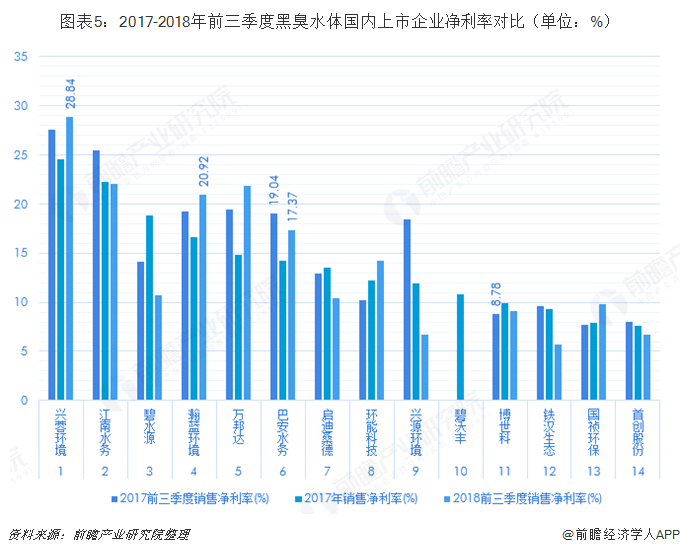 ? ? 興蓉環(huán)境獲利能力最強(qiáng),啟迪桑德、碧水源、興源環(huán)境等上市企業(yè)的盈利水平均出現(xiàn)下滑