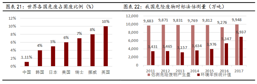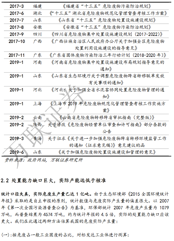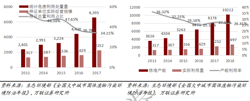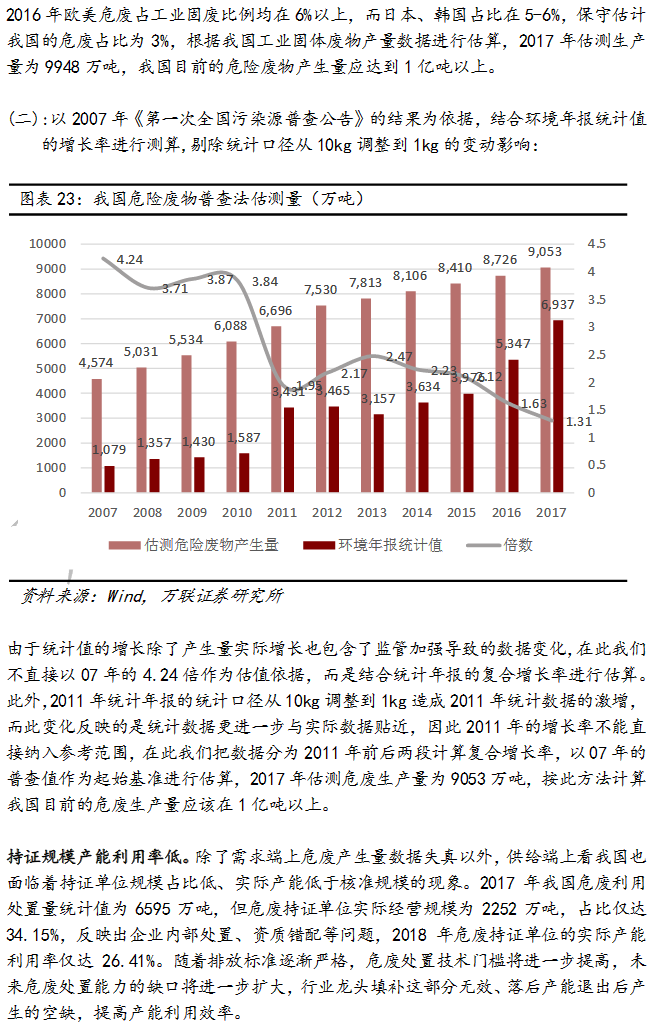 北極星固廢網獲悉,萬聯證券測算2020年工業危廢年產量已超過1億噸,但由于持證企業產能利用率低、處置種類錯配等因素,持證危險廢物處理規模僅達34%,CR8僅達28%。伴隨政策落地以及運營監管的加強,未來行業將逐漸規范化,龍頭企業將迎來新的一輪合并期,市場占有率將進一步提升。