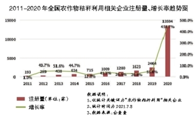 農(nóng)作物秸稈利用產(chǎn)業(yè):現(xiàn)存企業(yè)4.14萬家,2020年新增注冊量漲幅超450%