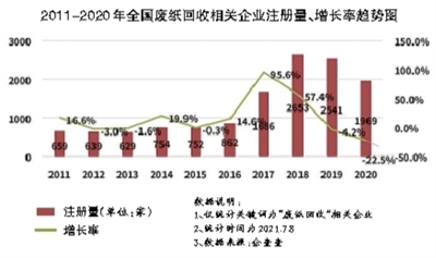廢紙回收產(chǎn)業(yè):現(xiàn)存企業(yè)2.2萬家,近十年增長緩慢