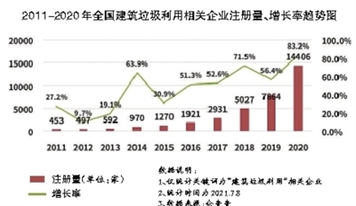 建筑垃圾利用產(chǎn)業(yè):現(xiàn)存企業(yè)4.8萬家,近兩年增速明顯