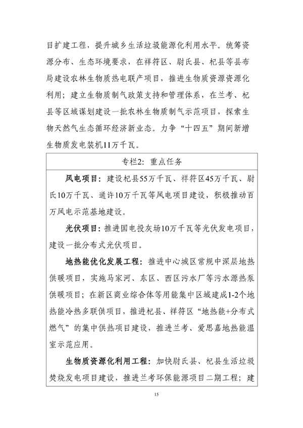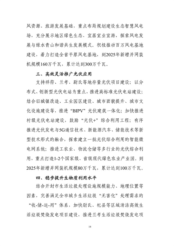 日前,河南開封就《開封市“十四五”現(xiàn)代能源體系和碳達(dá)峰碳中和規(guī)劃(征求意見稿)》公開征求意見,該規(guī)劃指出,穩(wěn)步提升生物質(zhì)利用水平,結(jié)合開封市生活垃圾處理設(shè)施規(guī)模能力、地理位置等因素,完善滿足全市城鄉(xiāng)生活垃圾“無(wú)害化”處理需求的“收-儲(chǔ)-運(yùn)-用”體系,加快尉氏、杞縣等區(qū)域清潔高效生活垃圾焚燒發(fā)電項(xiàng)目建設(shè),推進(jìn)蘭考生活垃圾焚燒發(fā)電項(xiàng)目擴(kuò)建工程,提升城鄉(xiāng)生活垃圾能源化利用水平。統(tǒng)籌資源分布、生態(tài)環(huán)境要求,在祥符區(qū)、尉氏縣、杞縣等縣布 局建設(shè)農(nóng)林生物質(zhì)熱電聯(lián)產(chǎn)項(xiàng)目,推進(jìn)生物質(zhì)資源資源化利用;建立生物質(zhì)制氣政策支持和管理體系,在蘭考、杞縣等區(qū)域謀劃建設(shè)一批農(nóng)林生物質(zhì)制氣示范項(xiàng)目,探索生物天然氣生態(tài)循環(huán)經(jīng)濟(jì)新業(yè)態(tài)。力爭(zhēng)“十四五”期間新增生物質(zhì)發(fā)電裝機(jī)11萬(wàn)千瓦。詳情如下: