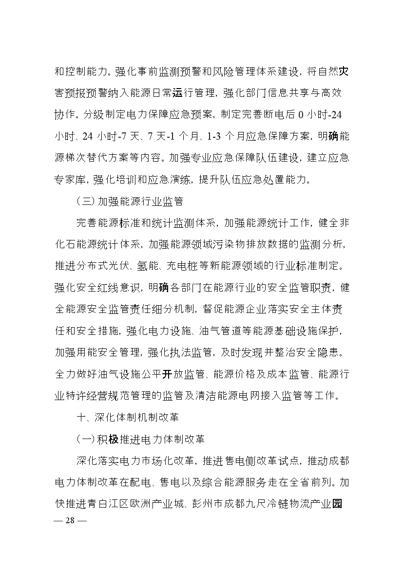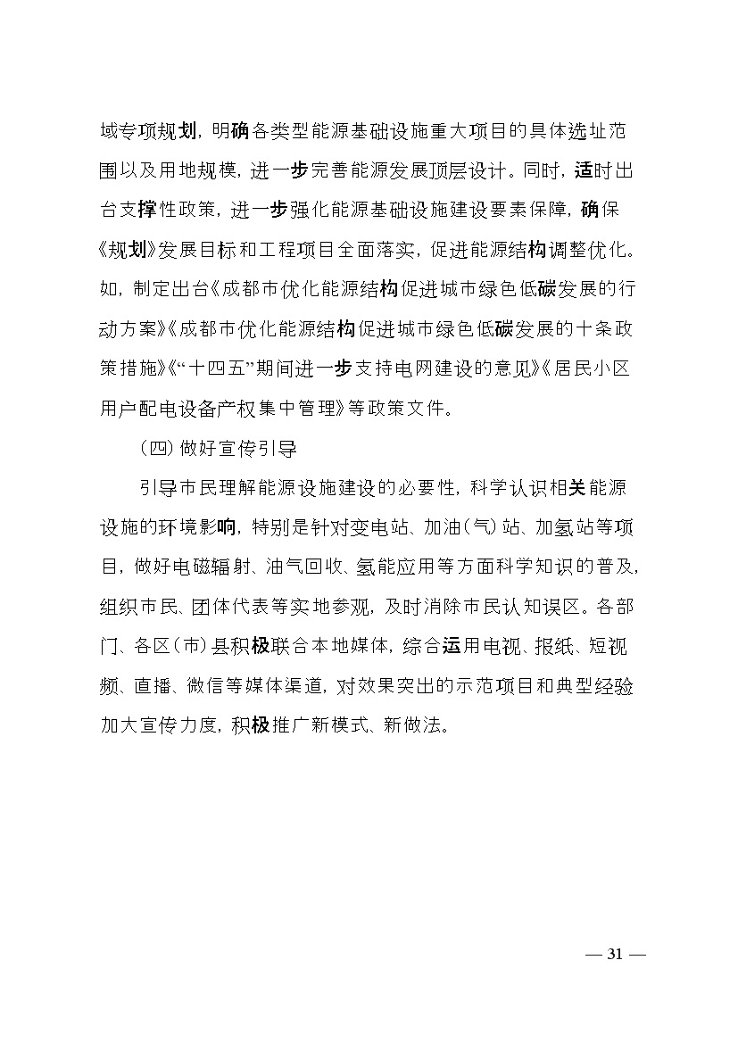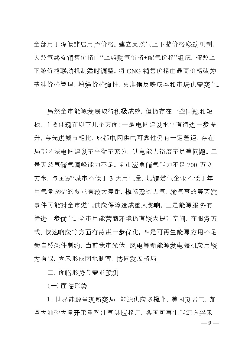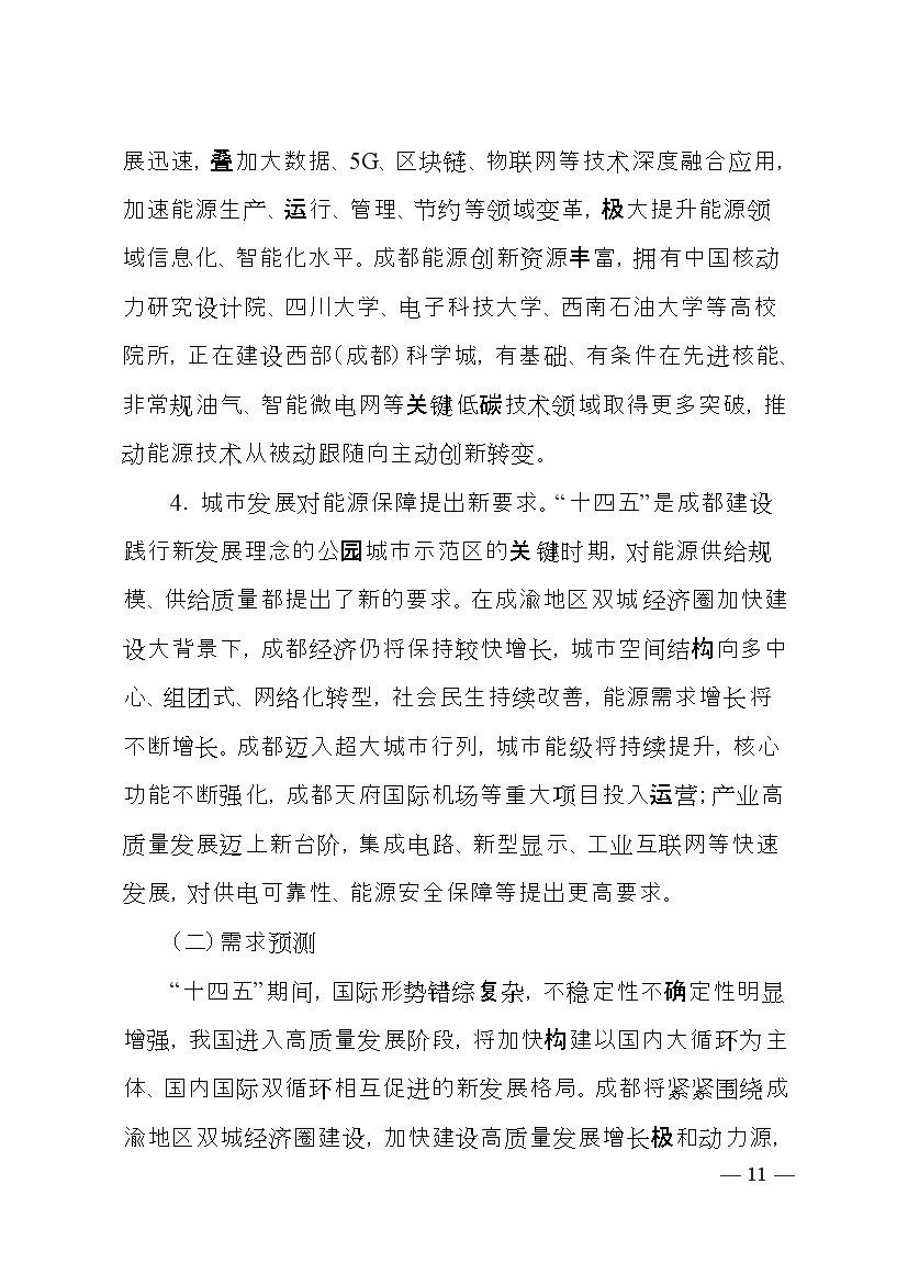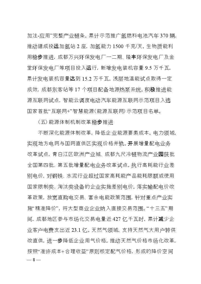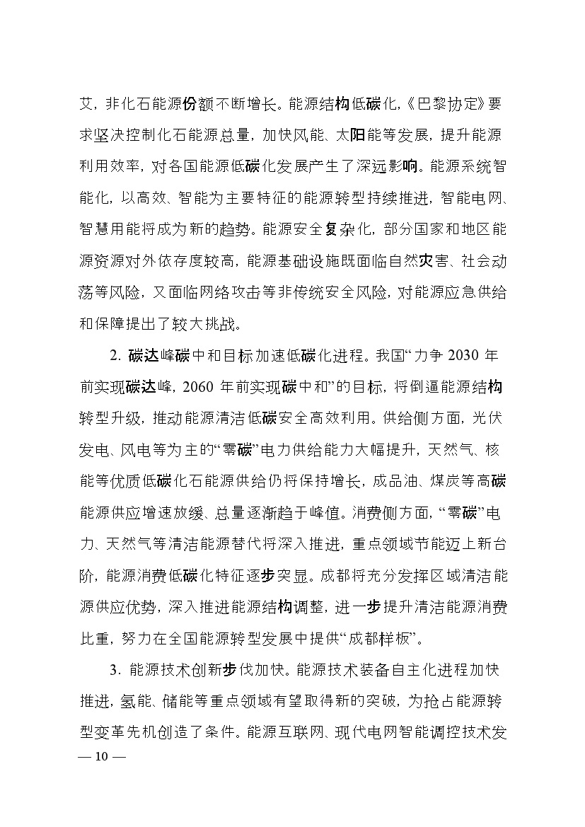 成都市人民政府印發(fā)《成都市“十四五”能源發(fā)展規(guī)劃》,明確了以創(chuàng)新發(fā)展為動力,以強(qiáng)化保障能力為抓手,加快構(gòu)建新型電力系統(tǒng),持續(xù)推進(jìn)清潔能源替代,優(yōu)化能源消費(fèi)結(jié)構(gòu),全力提升能源利用效率發(fā)展思路。并提出總量控制目標(biāo)、消費(fèi)結(jié)構(gòu)目標(biāo)、能源安全保障、等能源節(jié)約目標(biāo)、基礎(chǔ)設(shè)施建設(shè)等發(fā)展目標(biāo)。