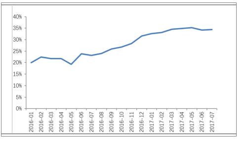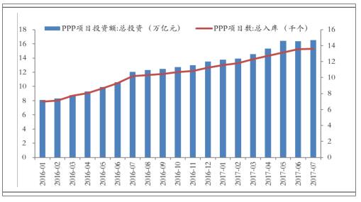 ? ? 根據(jù)全國(guó)PPP項(xiàng)目庫(kù)統(tǒng)計(jì)數(shù)據(jù),截至2017年7月末,全國(guó)入庫(kù)項(xiàng)目投資額高達(dá)16.54萬(wàn)億元,同比大幅增長(zhǎng)37.49%,共計(jì)13599個(gè);項(xiàng)目落地率34.40%,比上月提升0.2個(gè)百分點(diǎn)。