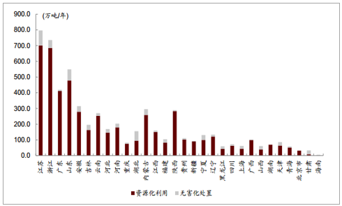 ? ? 我們?nèi)绻僭O(shè)官方在處理量上的數(shù)據(jù)不存在低估的現(xiàn)象,這就導(dǎo)致了實(shí)際的綜合利用率和處臵率大幅降低的情況。我們估計(jì), 2016 年綜合利用率和處臵率只能分別達(dá)到 26%和 16%左右,比官方的數(shù)據(jù)要低 25%和 16%以上。同時(shí),各省市目前已批準(zhǔn)危廢處理資質(zhì)尚且不足。我們統(tǒng)計(jì)各個(gè)省市環(huán)保廳發(fā)放的危廢處理資質(zhì)和產(chǎn)能,可以發(fā)現(xiàn)現(xiàn)在總計(jì) 1810 家企業(yè)獲得省級(jí)危廢處理資質(zhì),總核準(zhǔn)產(chǎn)能5880 萬(wàn)噸/年。按照我們預(yù)計(jì)的每年 8000 萬(wàn)到 1 億噸的危廢生產(chǎn)量,危廢處理能力依舊遠(yuǎn)遠(yuǎn)不足。